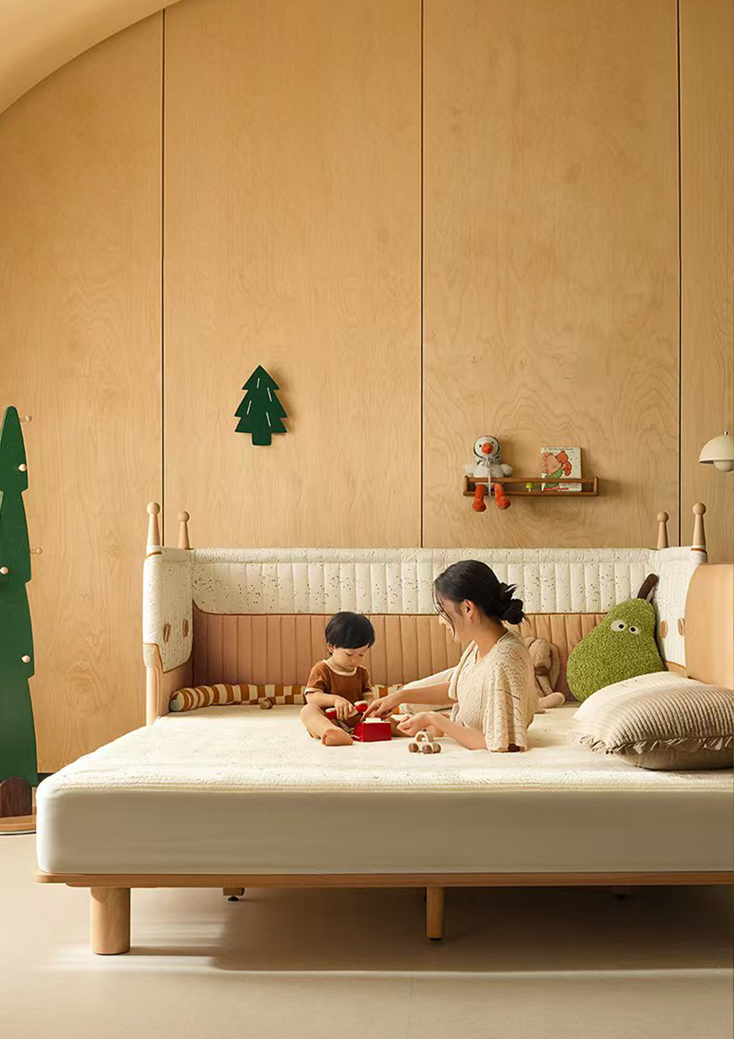 这是一款注重科学防护的婴幼儿床,其采用66cm超高防护护栏和360°精细化安全保护,可预防学步期宝宝攀爬跌落,同时消除尖锐棱角带来的隐患。为提升适用性,延边板无缝拼接技术结合12档精密调节系统实现了与各种床型的完美匹配,也避免了夹手、夹腿等安全问题。特别设计的可拆卸模块化护栏则支持从新生儿到学龄前儿童不同成长阶段的需求调整。此外,独创的拼接床延展模式,最大可扩展至3米超宽睡眠区,解决了多孩家庭的空间局促问题。