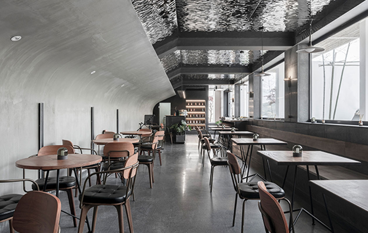 原舍 · 怀谷藏于莫干山的山谷中,意为走进山里,回归初心。全新的X-living设计理念将空间、建筑设计和景观融为一体,包含了多种社群的居住模式,满足情侣、艺术家、背包客等不同人群的居住需求。绵延的线条与包裹了整幢建筑的流水一同构成了怀谷设计主题中的“延伸”这一概念。用玻璃砖替换墙面,让光在厅堂延伸;建在水上的沙发卡座,让水在脚下延伸;局部的拆除处理,让景在室内延伸。致敬安藤忠雄的“光之教堂”,“怀谷”建筑仅仅是人与自然的一个媒介,让居住于此的人能够直观立体的感受大自然的存在。当空间的边界被消除,时间的速度被放慢,视野中的一切都仿佛附上了一层温暖且柔软的滤镜,洗去精神上的疲惫与心酸。“怀谷”的酒吧更是延续了旅人对旅途的幻想。穹顶之上,均匀、细腻且如水波般凹凸不平的反光材料令来客在沐浴灯光的同时,无需抬头便可看见穹顶上那“流动”的河流正随着他的步伐闪着粼粼的波光,引领着他们与这一路的风尘共饮,就着时光下酒。而卧房中,设计师并没有留下过多的装饰,而是抱持着对自然与原始的尊重,打造了一个个质朴而清新的空间。裸露的结构还原了空间本质的美好,也让室内外的风格更加轻巧的融合在了一起,给予来客一个更加深远,且美妙的睡眠。