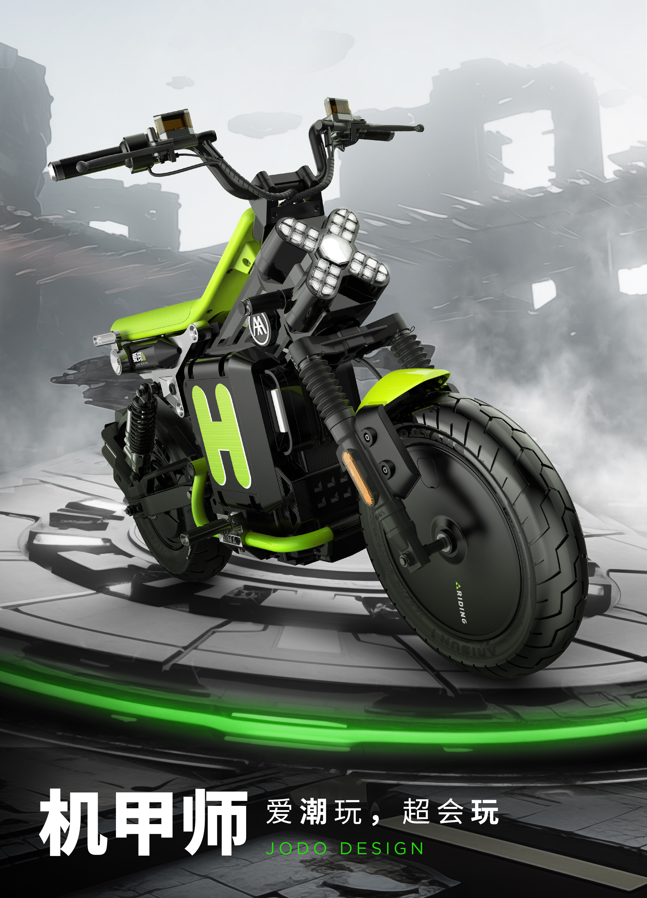 这款电动自行车承袭赛博朋克风格,炫酷外观,未来感十足。独特 X 型动态数码点阵大灯与无极变色氛围灯,彰显个性魅力。跨骑造型,线条简洁硬朗,符合年轻人审美。配备强大动力系统,大行程前后避震,四季热熔真空胎,前后打孔双碟刹制动,提供卓越驾驶性能。石墨烯电池,续航无忧;智能防盗系统,安全守护。机甲师,不仅是一辆电动车,更是科技与时尚的完美结合,引领电动车产业设计新潮流。