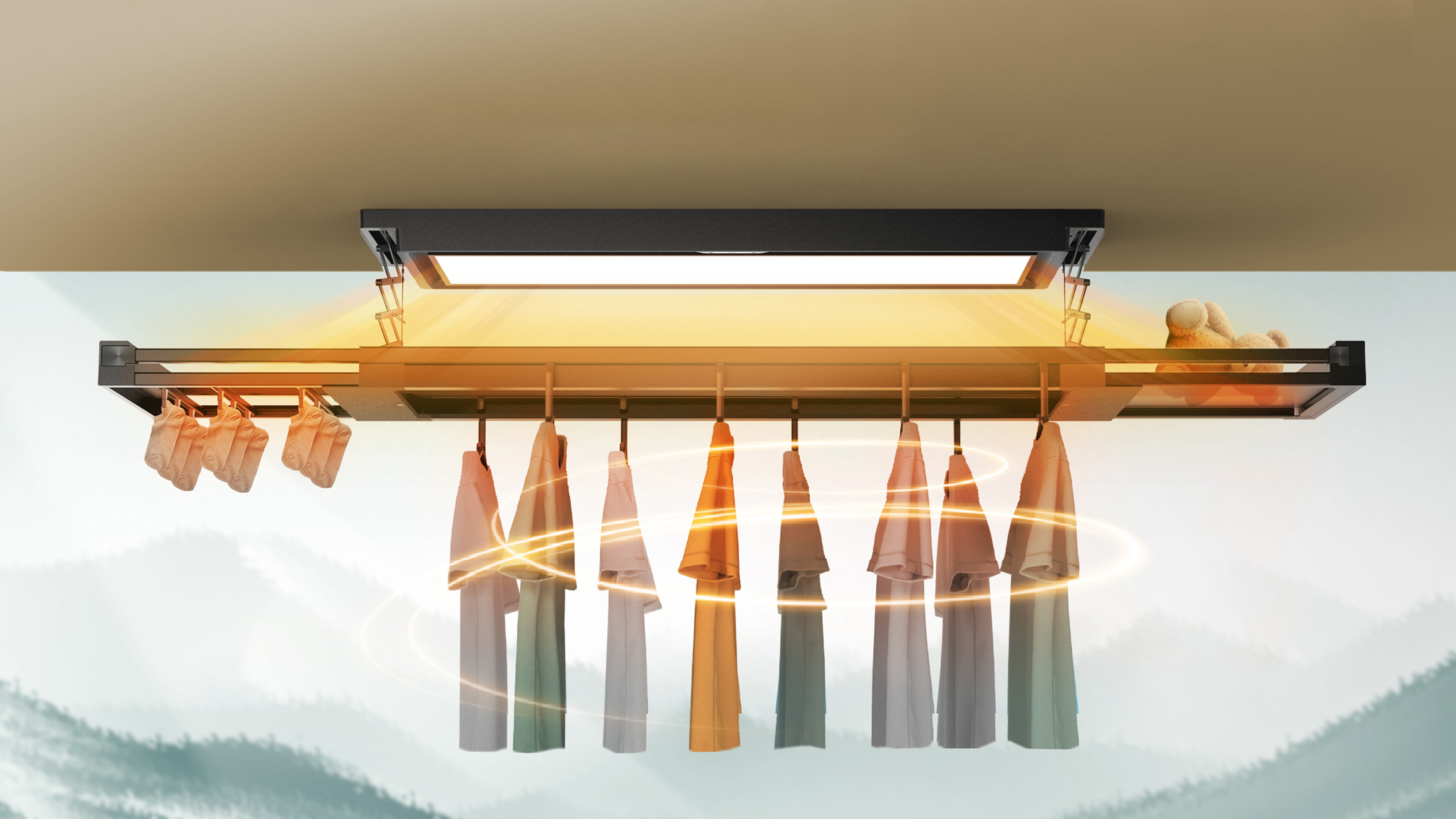 好太太晾衣机具有超薄嵌入式外观巧妙地将灯具与阳台晾晒杆结合在一起,智能化操作实现灯光调节。该晾衣机有别于传统晾衣机笨重的设计,采用极简风格的嵌入式设计,强调自然光线的最大化,减少机器在阳台中对自然光线的遮挡,创造明亮、开放的生活阳台氛围。多功能晾被杆:实现快速晾晒、平行晾晒和多层晾晒,增加晾晒数量。当下雨天气时,南方可以选择全域烘干晾衣机可以实现所有衣物的烘干、消毒,实现衣物快速烘干。