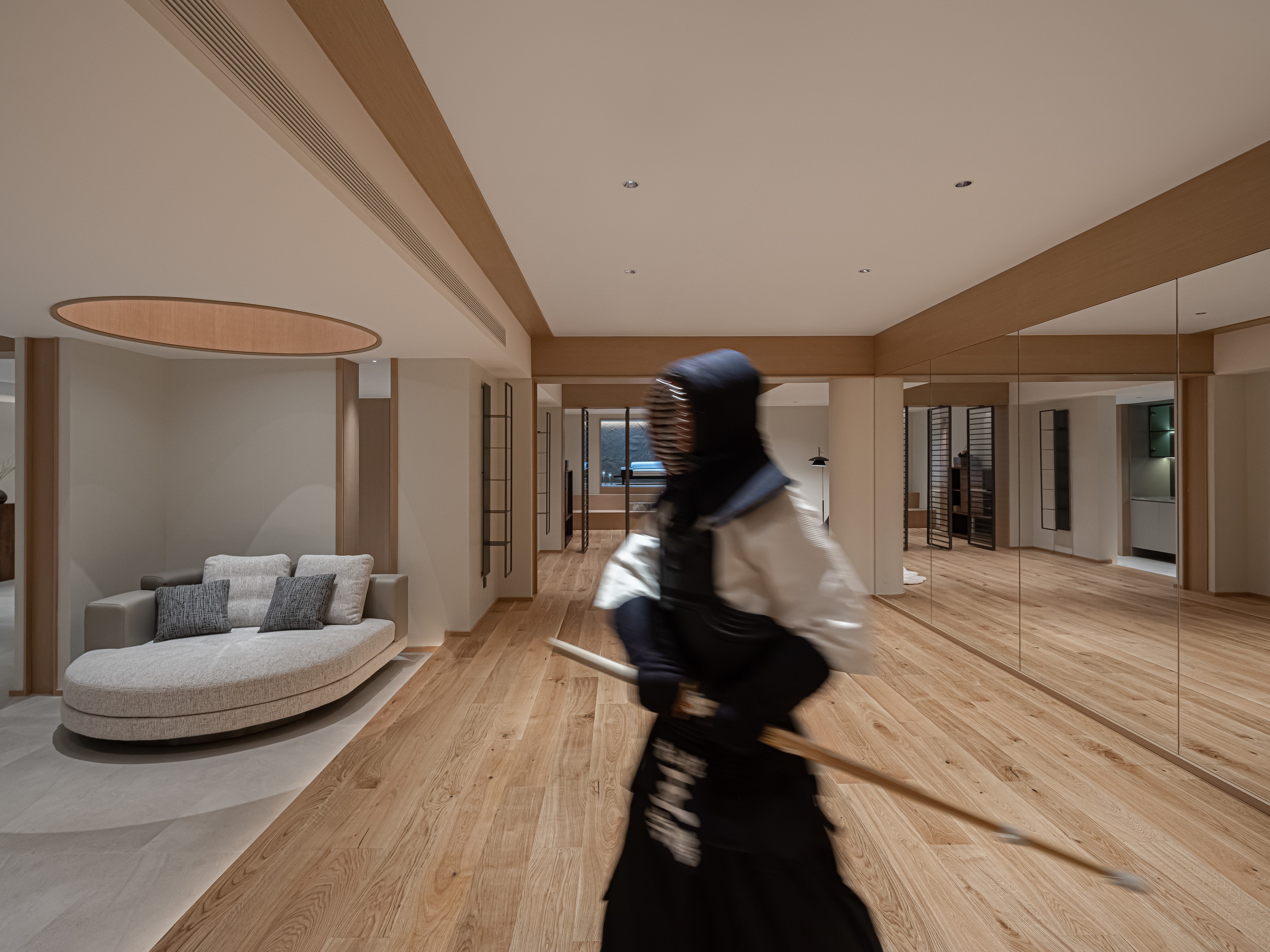 设计师在满足五口之家的生活功能需求下,尽可能拓展整体空间的更多可能性,并巧妙利用多种设计手法攻克了房子每层面积大采光不足的疑难和半地下室通风潮湿的问题。设计师同样在美学需求上表达了自己 “致广大,尽精微” 的追求。意图把整个房屋做成一个流动的空间,虽地处北方,屋内无水,最终呈现出的整体氛围和空气却自然地流动起来。目之所及,无边界围墙的划分,无需刻意把目光调整到某个角度某个空间,也不需要堆砌或着眼于某种材料。置身其中,这个项目希望通过用心的设计给人带来舒适的喘息感。