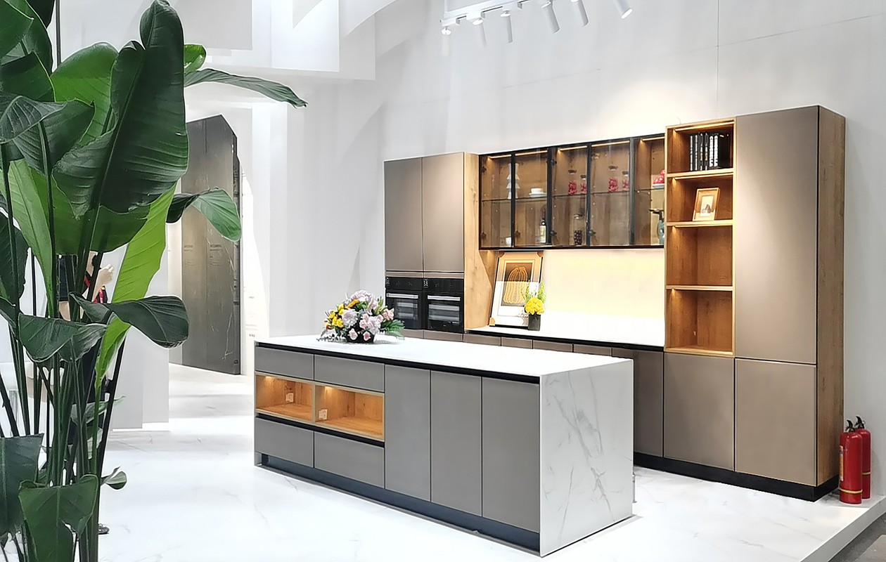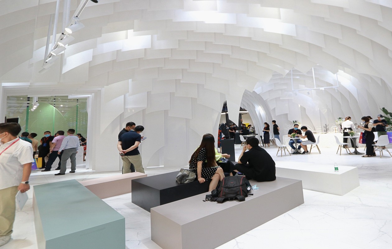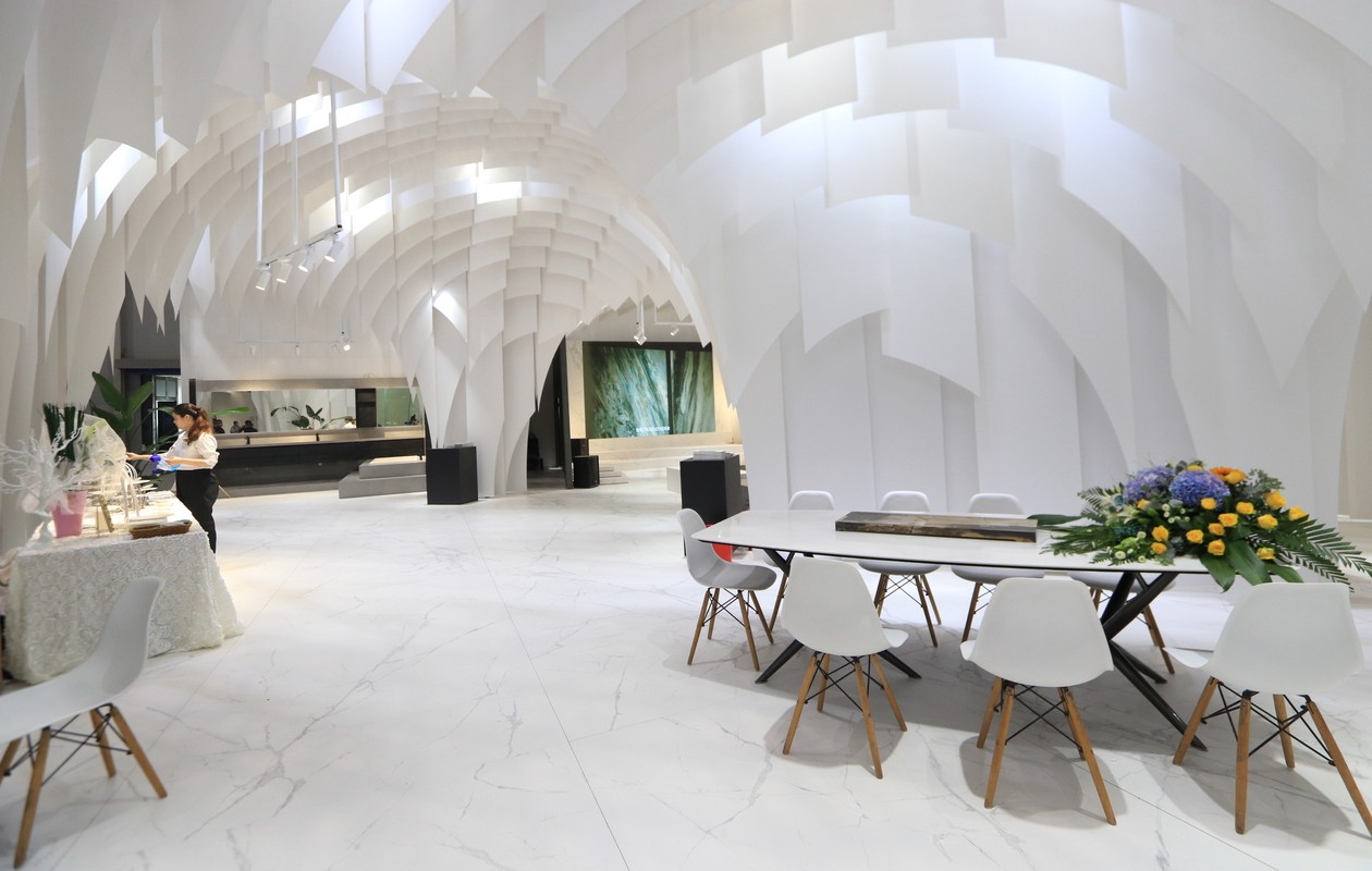岩洞的设计灵感源于岩板的“岩”字延展的洞穴概念,展现产品在多个功能分区的突破性应用的同时,以精心设计的几何造型,凸显建筑空间与品质生活新趋势。