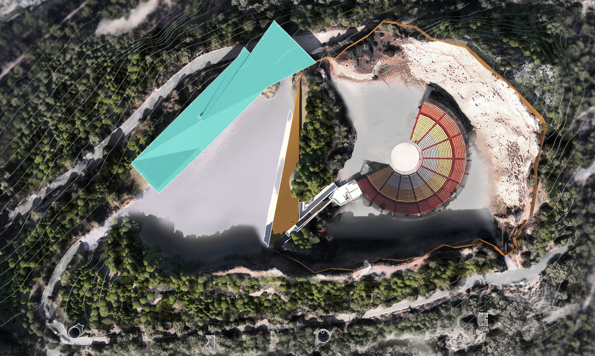 该平台在夏季提供遮阴,其功能性也大大增强了场地的使用价值。平台配套的茶饮亭、展览空间和活动场所与剧院相辅相成,既是城市探索的目的地,也作为游览雅典的出发点。它们的建筑语言延续同样的乌托邦精神。在构图层面,平台在景观与剧院之间形成对位关系,然而在本质上,它静默地呼应着泽内托斯的建筑伦理:是一种向天空延展的建筑姿态。