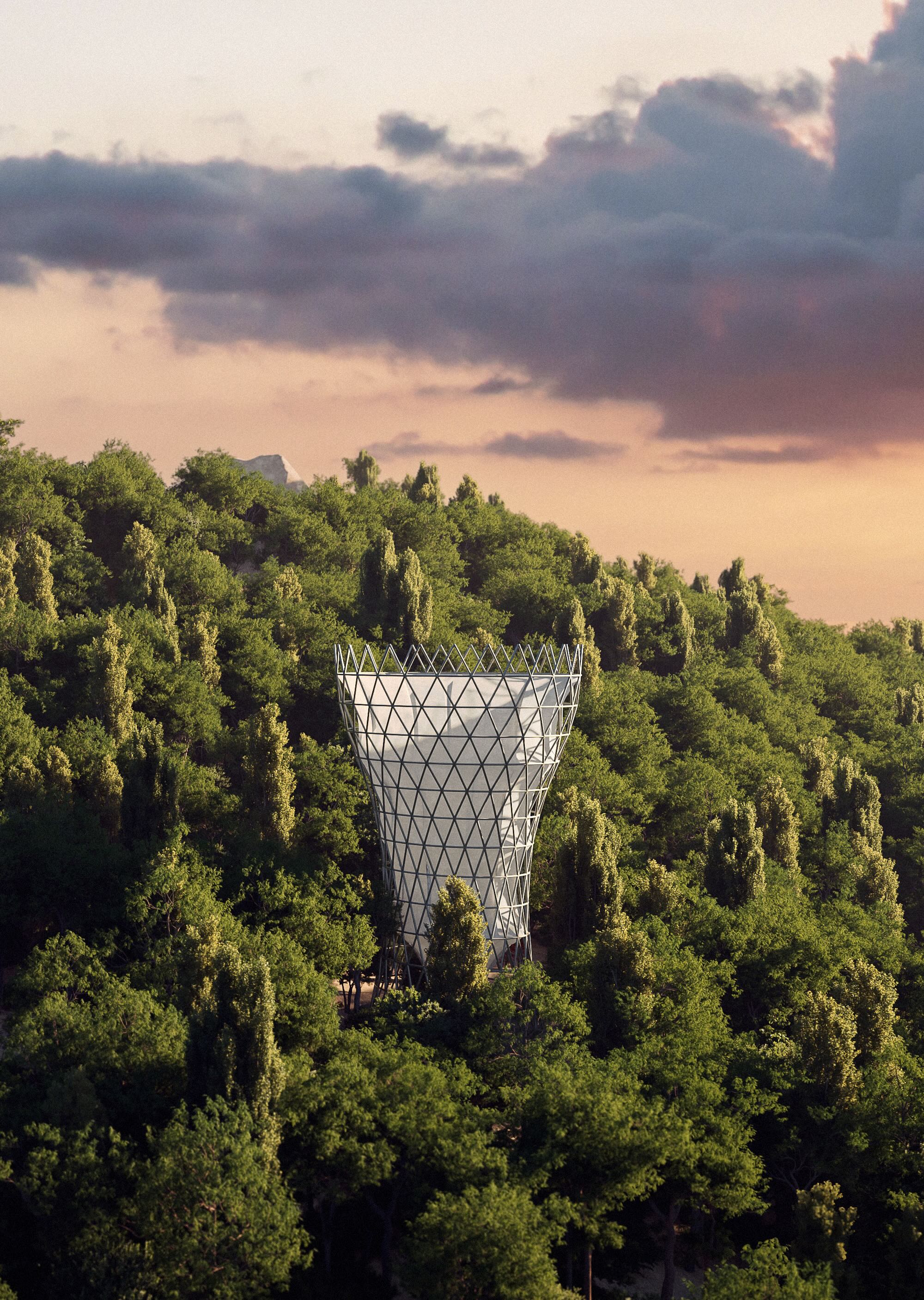 该提案力求优化材料使用,减少现场施工量,从而降低建设成本,并赋予利卡维托斯山新的地标意义。在这一过程中,建筑师塔基斯·泽内托斯(Takis Zenetos)更广阔的愿景也被纳入考量,特别是他关于“电子都市主义”的乌托邦设想,为当代建成环境提供了新的思路。设计理念参考了泽内托斯若在今日可能采取的原则:采用尖端、轻质、生态足迹低的材料。 “Pan.Orama”平台的抬升手法深受泽内托斯建筑思维影响,不仅释放了地面空间以供多样活动使用,同时通过充满动感的形式,确立了一个眺望雅典的新地标。