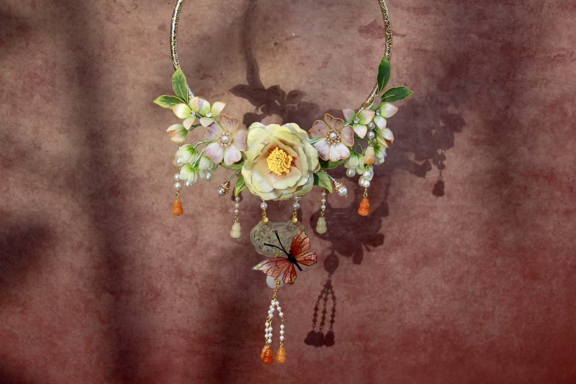 本系列首饰设计灵感源于海南丰富多样且独具魅力的花卉。海南作为热带岛屿,拥有众多特色花卉,它们色彩明艳、形态各,充满生机与活力。我们希望通过绒花这一传统非遗王艺,将海南花卉的独特之美融入现代音饰设许中,让更多人领略到海南花卉文化的魅力,同时也为绒花技艺的传承与发展注入新的活力,实现传统与现代、地域结合。