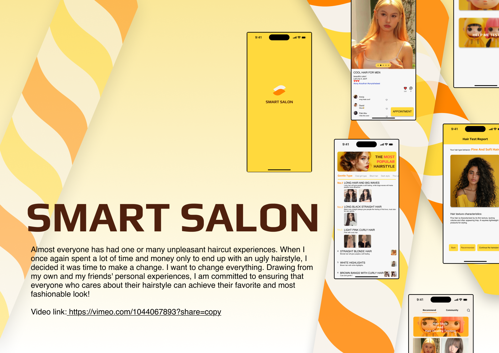 几乎每个人都有过一次或多次不愉快的理发经历。当我又一次花了大量的时间和金钱却只得到一个难看的发型时,我决定是时候做出改变了。我想改变一切,于是Smart Salon诞生了,这款app可以帮助检测发型发质,帮助顾客预约,并且能让顾客与理发师进行有效的交流和互动,让大家都能达到他们最喜欢和最时尚的样子!