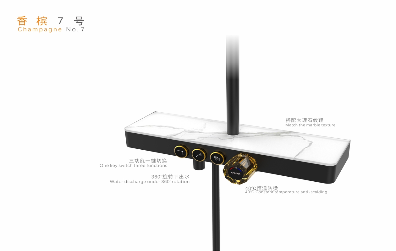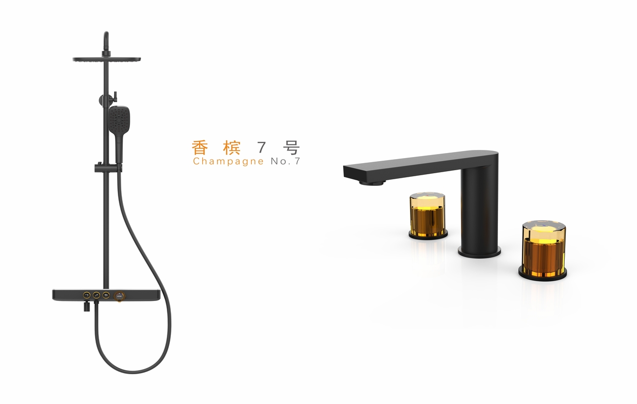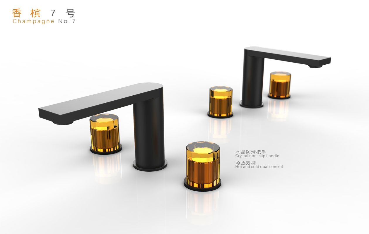 香槟7号采用水晶做装饰设计,通过清透的视觉感与黑色搭配营造高贵而奢华的质感。开关把手采用了防滑多边形设计,通过加深把手握持部分的质感来提升摩擦力,避免出现打滑操作的问题。方圆结合的外观设计刻画出更加简约的现代美学韵味,方便用户构建灵活、多元设计风格浴室柜空间。整体展现出雅致与优美之感,融时尚与奢华为一体。