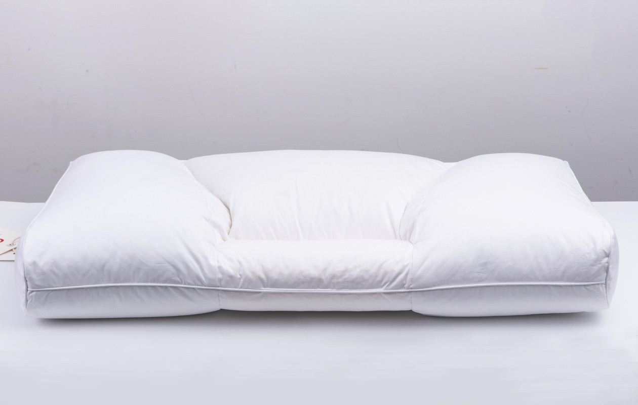 东方赋分区鹅绒安睡枕从细节出发,采用高端材料,利用人体工学设计,提供舒适健康的睡眠体验。该产品创造性地将枕头分为仰睡区、侧睡区、和颈椎舒缓区,枕头自然贴合头部曲线,有效支撑后脑、颈部、肩部3个受力点,按比例承托头颈重力,防止颈椎因受力不均产生变形、产生不适。以人体工学区分设计为基础,多重不同回弹材料复合填充,适应多重人群的不同睡姿需求。 仰睡区高度10.5cm,采用上下95白鹅绒填充,中间层250g乳胶颗粒,凹陷曲面,以贴合头部曲线。