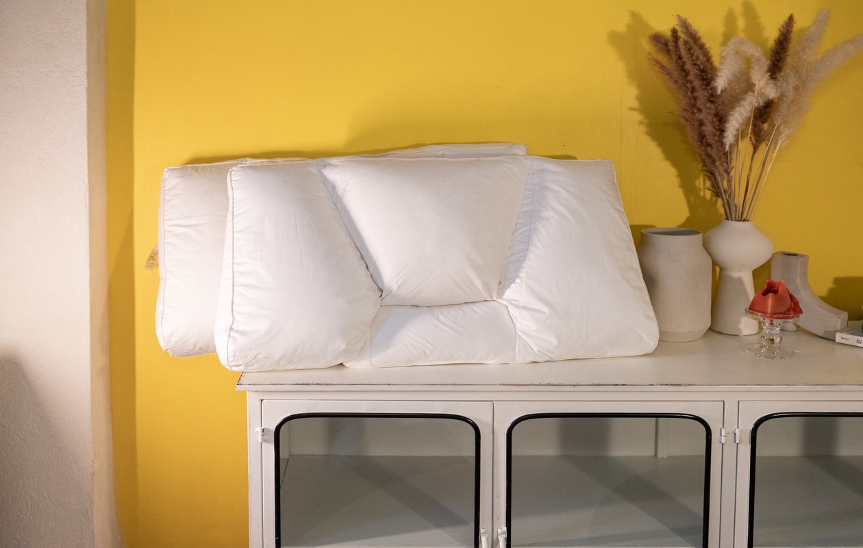 根据人体工学设计,三层立体填充,既有舒适支撑,又有天然绵密触感。仰睡区接触层选用匠人手工挑选的99白鹅绒,突破了机器分拣鹅绒800的蓬松度上限,达到了920蓬松度,国标实测绒子含量≥96.3%,带来更细腻柔软的触感。 颈椎舒缓区高6.5cm,采用150g天然泰国乳胶颗粒填充。天然乳胶是用天然橡胶汁液发泡工艺制成,经过专业工艺打碎成乳胶颗粒,保持了乳胶的弹性和承托力,同时乳胶颗粒之间的自然空隙,又提升了透气性,对头部和颈椎有良好的支撑性,承托头颈曲线,仰睡状态平稳,仰睡时头部与自身重量形成反向牵引力,舒缓颈椎压力,放松颈椎的同时,舒展颈椎健康生理曲线。 根据侧卧时人的肩部到颈部的距离,枕头的侧睡区高度10.5cm,填充物为50白鹅绒+50白鹅毛片,可以填补颈间空隙,轻松承托侧睡时的头部,贴合脸颊,不压肩,给头部温暖依托。面料采用180支日本制生地纯棉面料,细腻柔软。无论是材料还是外形的设计都体现了设计师对睡眠者细致入微的关怀。