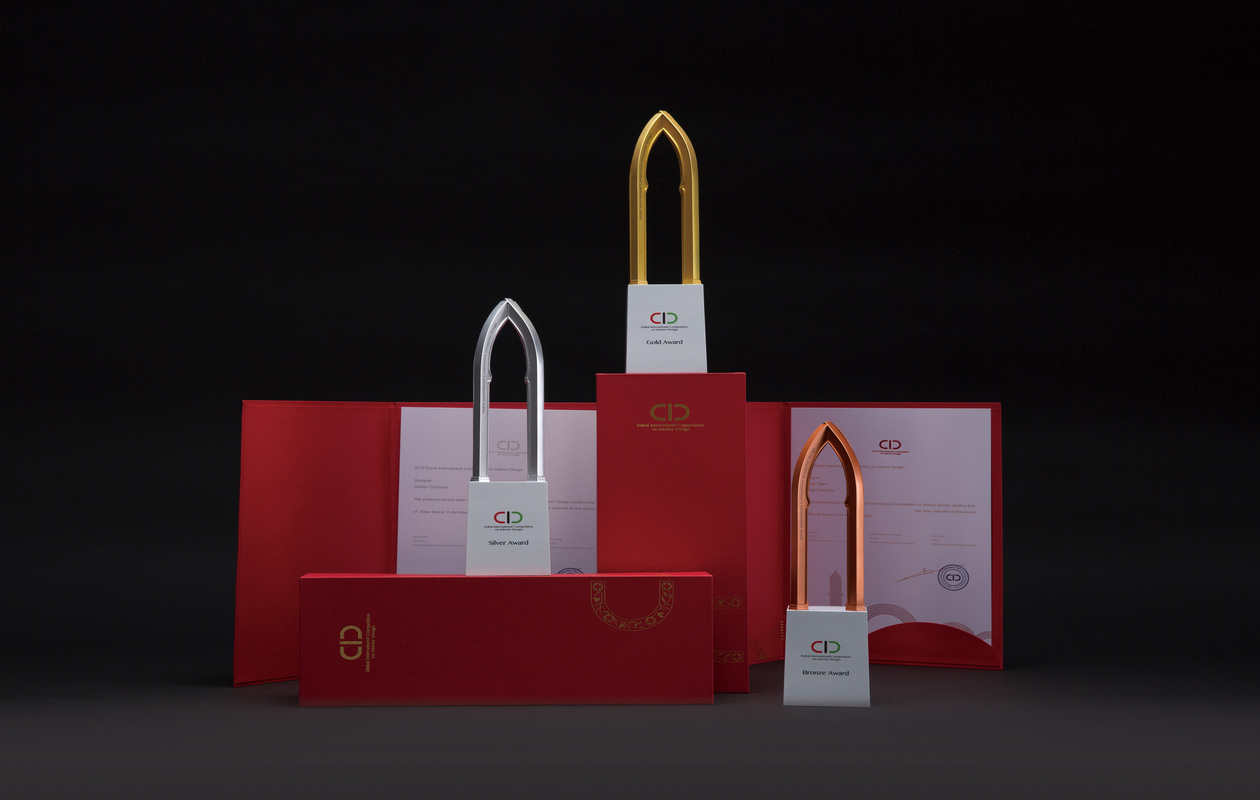 金、银、铜等奖杯设计是一座交错的伊斯兰建筑拱门,代表着东西方文化之间的桥梁。空心设计也代表了一种开放的态度和思维,代表了在不同文化交融中对专业的无限追求。