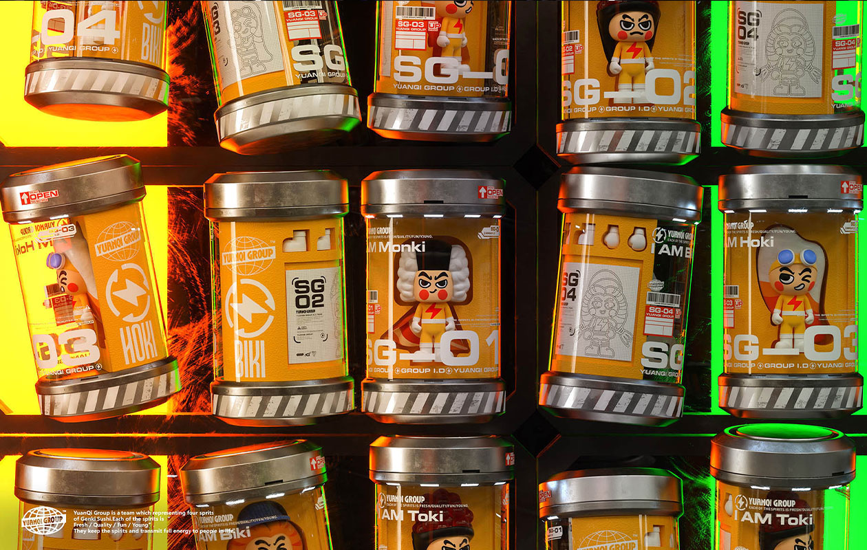 扩散元气。回转寿司在空间上,由于回转带的存在,能与消费者产生互动的空间并不多。在空间的创意概念上,契合“救元队”将店铺打造为基地,之后的店铺,都是救元队在某处建立的基地,以便于增大元气扩散的范围。元气的扩散不只是在餐厅里的那一两个小时,我们更希望可以将元气带到消费者的日常生活中。将品牌的调性文化代入到一系列的衍生产品与周边,在后期的营销推广中,结合不同的节点,通过IP将元気寿司特有的元气氛围与消费者发生互动,加深元気寿司与消费者之间的联系。