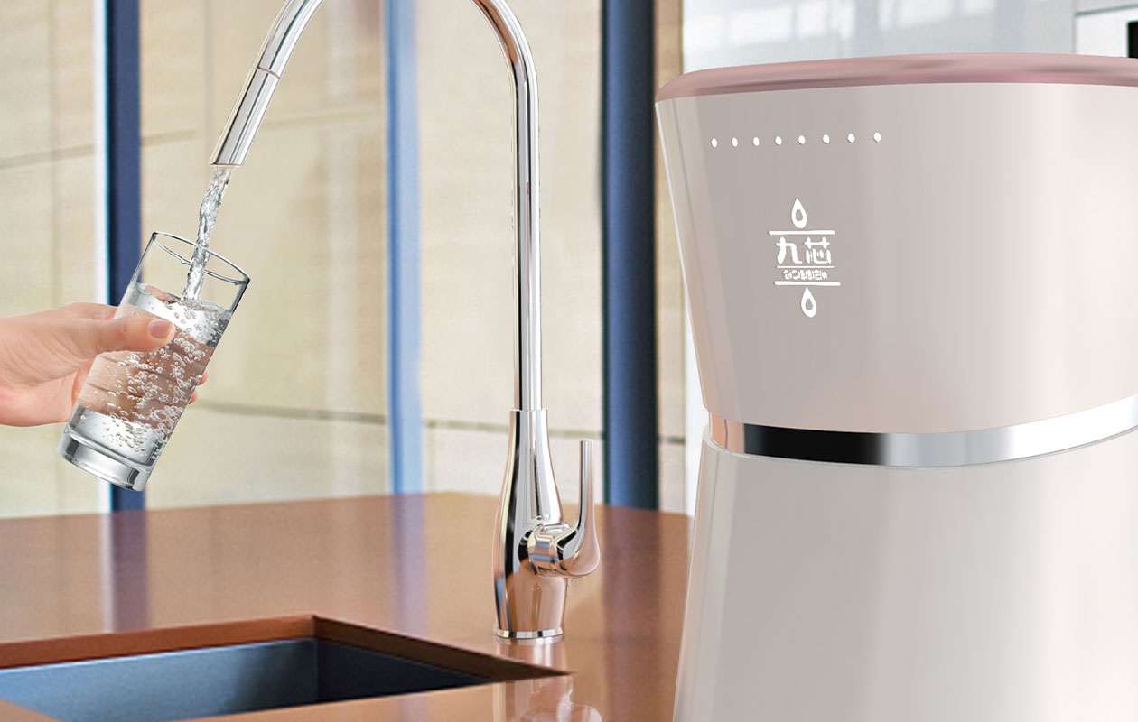 九芯净水器是一款厨房专用智能净水器,其除菌率(例如大肠杆菌),重金属去除率,余氯去除率高达99.99%,提高家庭饮用水的安全性,并为家人的健康保卫护航。用户可以使用手机小程序添加九芯净水器设备,实时查看家庭净水状态,及时掌控家庭用水状况,实现无忧用水。仅对原水做适度的过滤处理,保留人体所需的天然矿物质及微量元素(钾、钙、钠、镁等)出水呈弱碱性,小分子团水更易于人体吸收。对于心血管疾病的人群是极大的利好,可以避免因缺乏微量元素而引起的健康风险。净水器过滤速度高达2000mL每分钟,整个过程方便快捷,一杯健康的饮用水只需要等待6秒即可获得。净水器内部采用九层物理净水装置,可以有效的去除99%以上的重金属,细菌病毒,化学有机物以及余氯等有害物质。整个过滤过程不插电,无废水,真正实现环保节能。