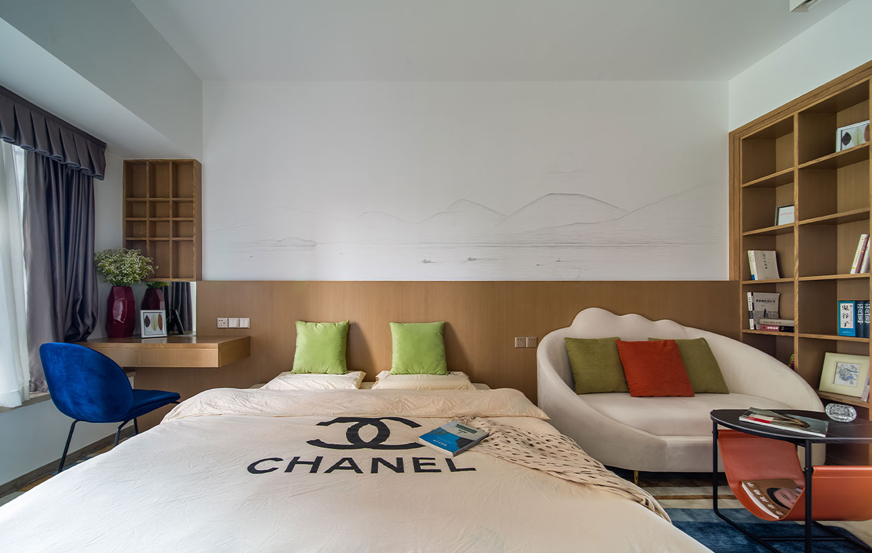 男主人是艺术创作者,女主人是大学教师,父母是传统耕作积极分子。父母以辛勤的劳动收入供了男主人四兄妹成功读完大学,实在不容易。他希望把135平方米的新房装修好给父母安享晚年的环境,满足三代同堂的日常生活的同时,又希冀具有人文和艺术气质的居住氛围,带点家的故事。