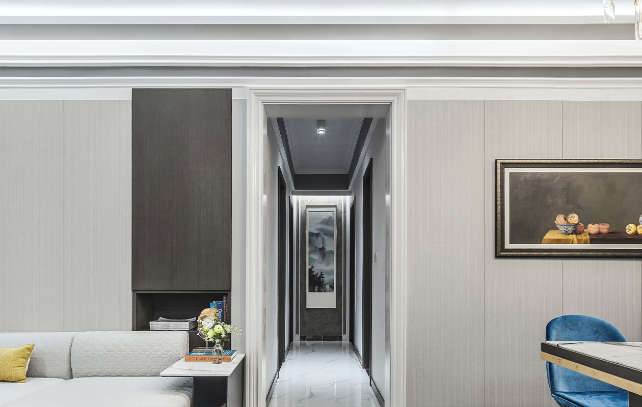 根据居者的生活习惯,在建筑固定承重结构的局限条件下,对可拆移墙体进行了革命性的改造,在保持空间功能完整性和独立性的条件下,更大程度的强化了空间功能应用;动态活动通过与静态休息享乐相辅相成,艺术氛围与起居收纳相得益彰。空间从整体到局部,都通过利落的分割,让结构,造型形成大小块面和长线条的几何对比,以取得更强的实用性和更大视觉的延展;在理性的结构图形当中置入感性的文化符号,方正内交互圆周,工整中穿梭随然。切合居者的居住需求和格调爱好,居室汇融不同国度的文化元素,不同时代的艺术肌理,颜色,相应置入空间三维的点,线,面中相互对比,文化元素间相互交融相互媲美,符号属性和表现技法相互对话,空间层次因各独立的艺术形态而更加立体分明。
