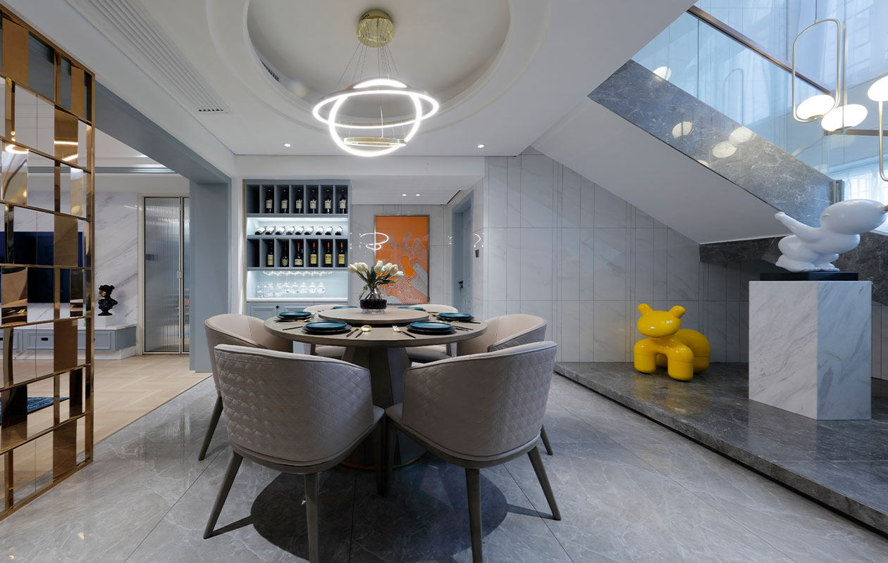 人生犹如白驹过隙转瞬即逝,活在当下,抓住这仅有的美好,忘却那些扰人的烦恼。 色彩上-利用色彩平衡法则让本案空间丰富的色彩达到视觉上的平衡,让人深入其中,忘却那扰人的烦恼,享受空间。 空间上-简化了美式线条,融入了现代元素,将材质之间柔和过度使之互相融合,静谧且温馨。