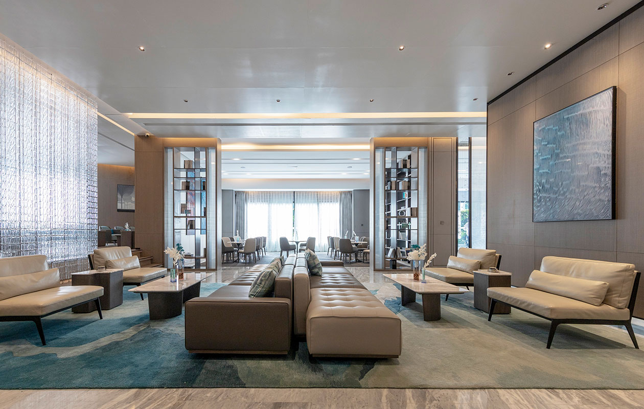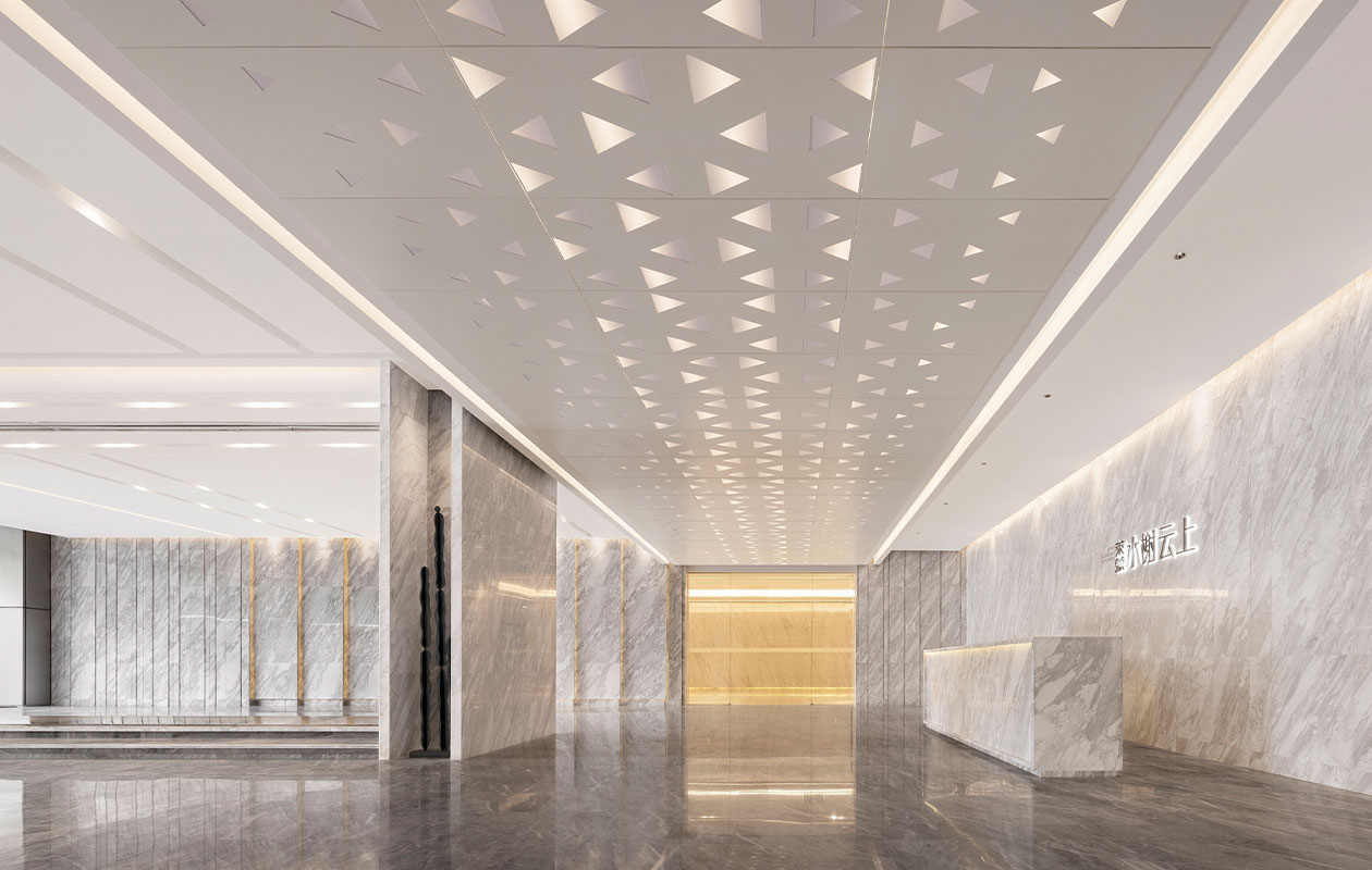在莱蒙水榭云上项目中,设计师将光与影的美纳入空间,通过对光影的不同表现手法结合六层叠景,来表达时间与未来、生生不息的的主题。 “水榭”作为设计元素贯穿项目始终,但当“水”不只作为空间中的一道风景而是扮演着平衡元素时,那些固有的预期和认知便在新的氛围里转化成了一个全新的观看世界的角度,在叙事的艺术时空里,空间和时间共同标志着一个被认知的整体,在时代中融合发酵。