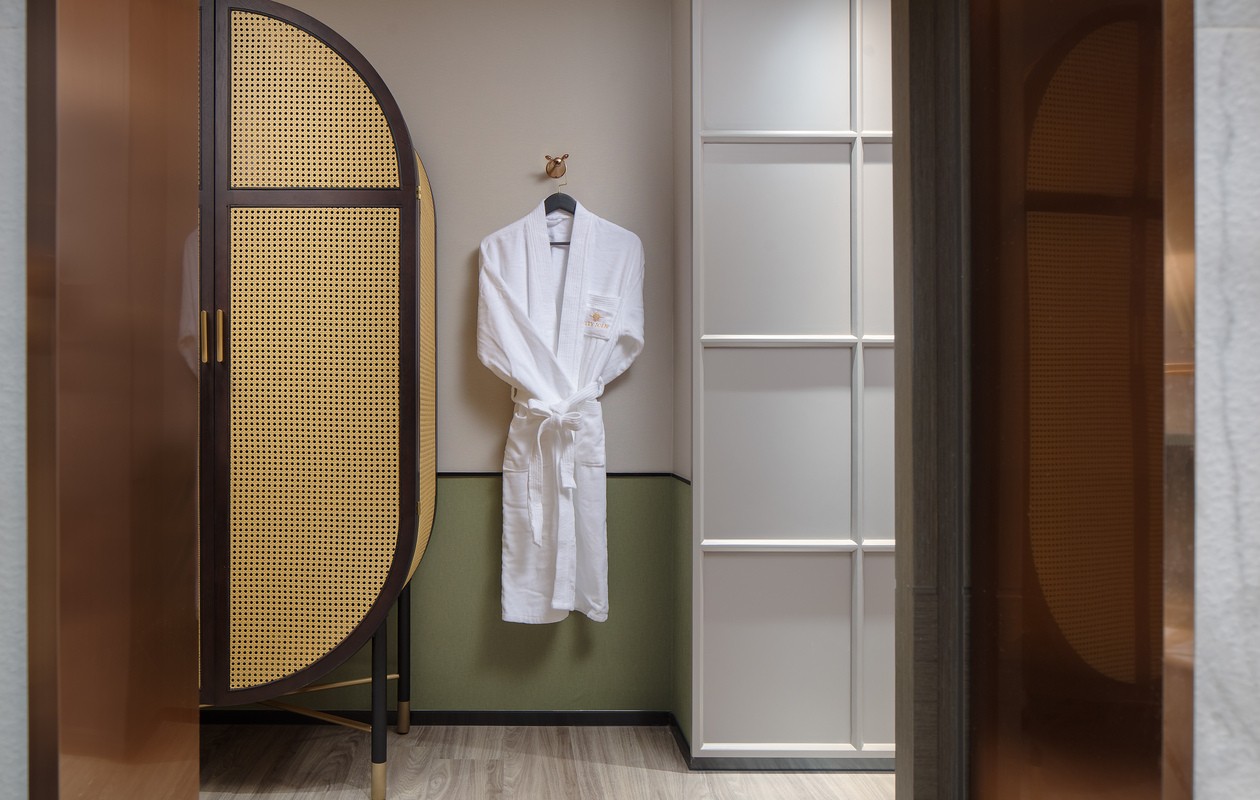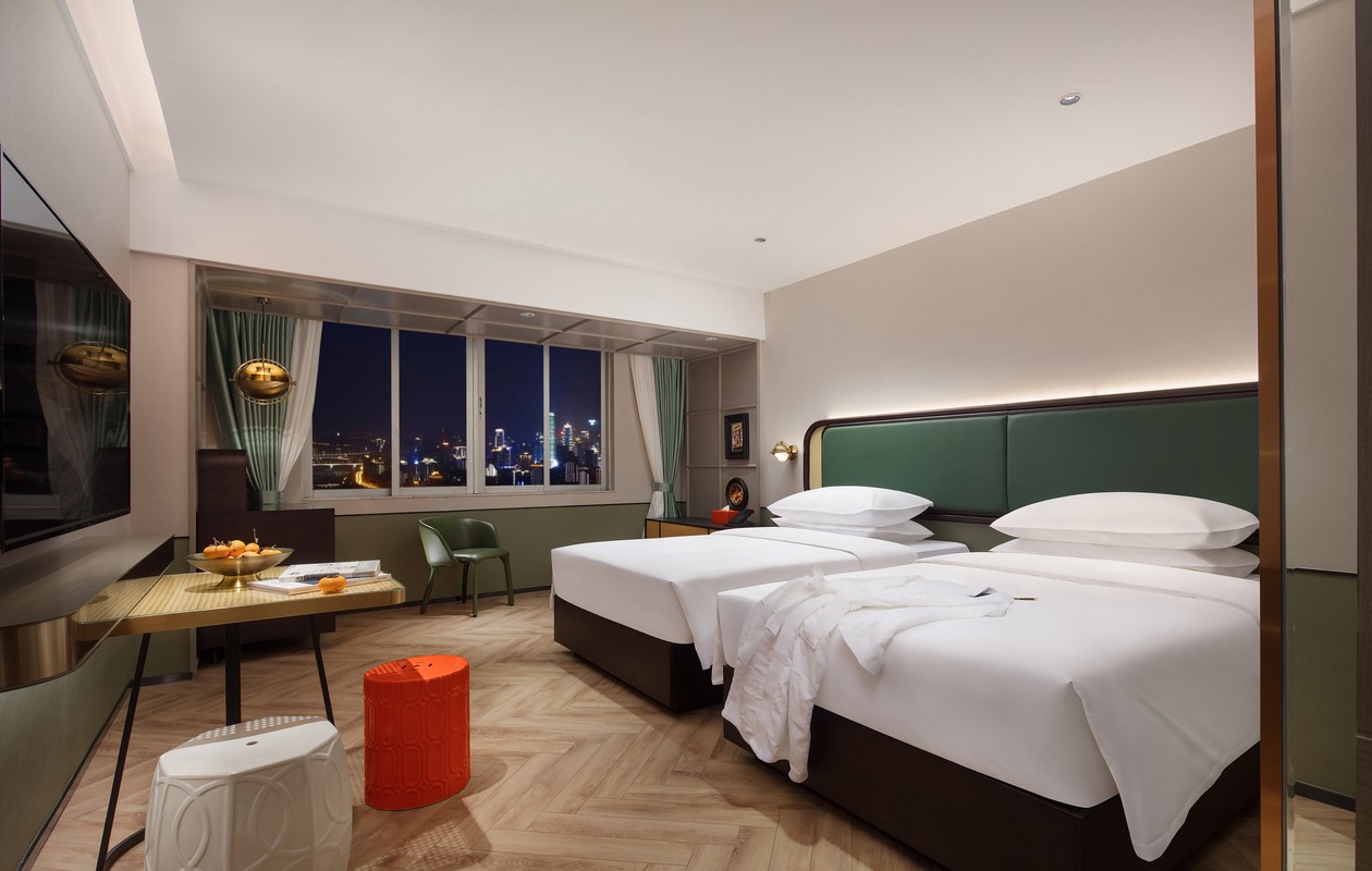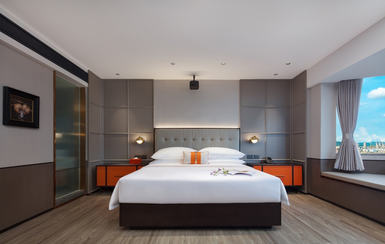 酒店位于海珠北路1115号(西门口地铁站附近),周边环境由越秀与荔湾两大老城区旧街组成;市井的街区、破裂的骑楼、千年的佛塔、有味的粤语充满着浓郁的广式氛围。通过调研考察,我们发现这里却少了一家可以值得称赞的旅居酒店,因而令我们想在此树立一个具有城市记忆的旅居空间。我们希望酒店不只是一个住宿空间,更是叙述城市的一个载体,让来到这座城市的人感知城市印记与人文情怀。团队通过对建筑本身条件的研究,提出公区去大堂化概念,打破传统酒店设计首层为酒店大堂的做法。结合广州的书院历史文化背景,将公区定义为空中城市书院,功能包含了接待,休闲,阅读,观景,城市文化长廊等,以混合式理念的空间布局。我们利用了原有的酒店电梯空间作为我们的城市书院,充分的将物业面积利用最大化。客房的设计也打破了传统酒店的布局模式,从标配电视到全智能化的投屏系统,除了将房间景别视觉上活化,更是从听觉嗅觉达到多维度体验。