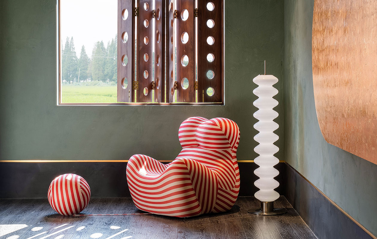 此项目地址位于杭州滨江孔家里文创园内。整体建筑是室内面积约为570平方,户外景观约为130平方的一栋村民自建房。房屋为砖混结构。考虑到承重因素,我们在规划整体平面考虑保留了原先的结构墙体再加以饰面改造。整体空间材质选择,我们在门窗造型上大面积使用了胡桃木加以金属点缀,将二者看似毫无关系的材质重叠在一起,用木质的柔软属性兼容金属的冰冷外衣,带来视觉以及触觉上的全新体验。墙面的材料我们打破原本平淡的墙面质感,用艺术涂料不规则的肌理感加以视觉冲击,丰富空间视觉。