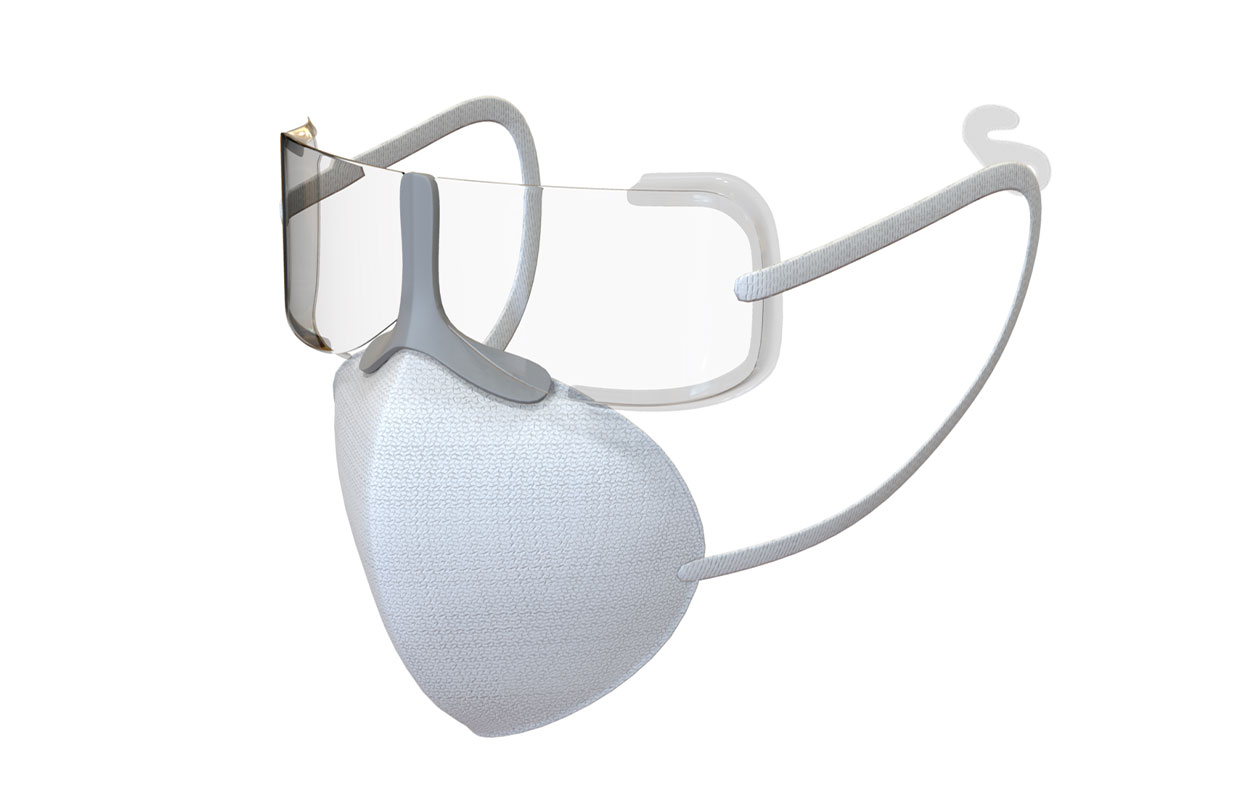 美观性:上部护⽬部分,对眼部进⾏防护;中部固定部分,运⽤软性材质可进⾏挤压对⿐梁部分根据不同⿐梁进⾏固定;下部⼝罩部分对⿐⼦与嘴进⾏防护,造型简洁⼤⽅。