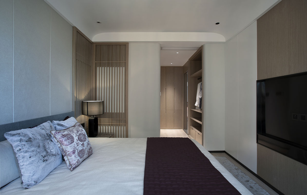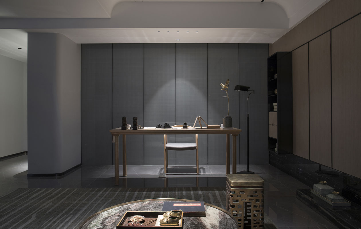 沏一盏茶,为心灵一片净土,拂去日常的风尘,让家成为身与心栖息放松的禅境空间。做世于喧嚣烟尘之外,醉心于视觉美感之中,在中国人心中似乎没有哪一种色彩,可以像红色一样,嵌入人心,直击灵魂深处,它是种生生不息的符号,象征着幸福与美好。炊烟袅袅,香壶一盏,抹中国红,带你徜徉五千年中国文化长河。汲取现代风格与东方典雅的精粹,收融于简洁内敛的居宅,进而提升艺术层次,并借由格栅疏漏,梳格光影的垂直秩序,与横向的墨染笔势,一脉平原景色和谐交织,室内,木料与石材软硬结合巧妙,相得益章。