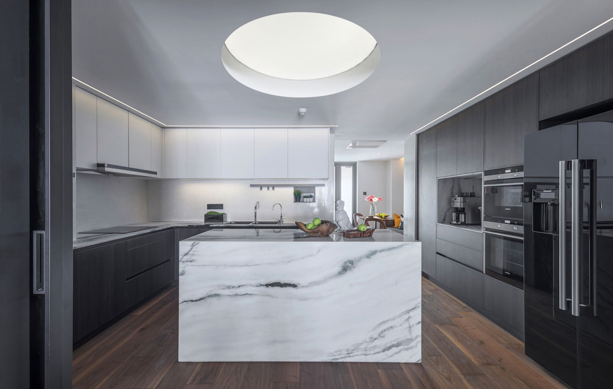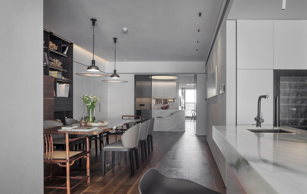 这是一个在中国汕头尚海阳光的案例,平面功能设计上在家庭实际生活方式中获得灵感,实用且富有生命力。房子面积240平方。原格局2厅5房,设计成了4厅4房。设计的目标是创造一个干净,多功能生活圈的空间。人们在轻松的氛围中交流与沟通。会客厅连接家庭厅与水吧,空间布置自由,现代沙发搭配中式柜子和印尼老柚木长椅相得益彰。会客厅空间完全交给主人会客,小朋友则在家庭厅内享有影音和娱乐,各有各的活动空间。两个厅之间动线流畅,空间即独立又互动。设计师从生活方式中汲取灵感,最大程度释放空间体量,分割出不同生活区域,细化人性化空间。设计的意义于此吧。