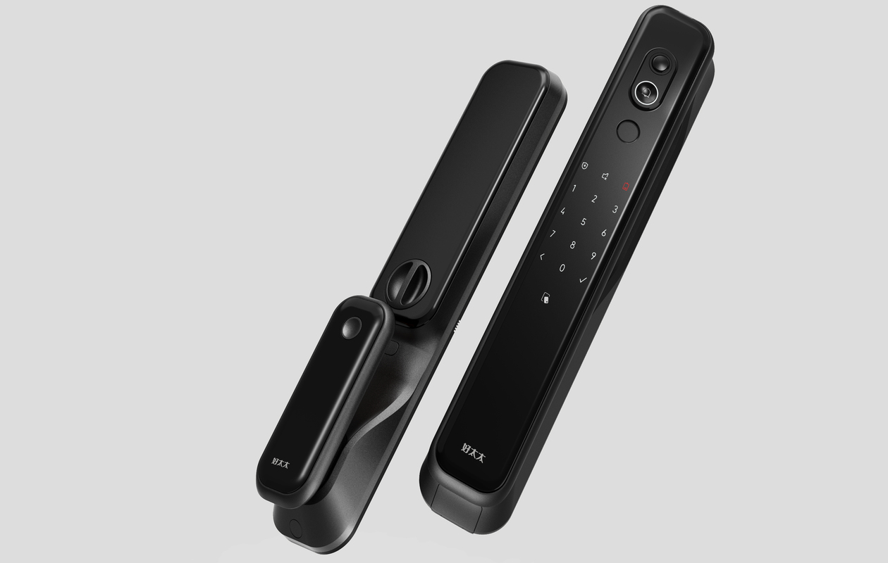 好太太智能锁V86强调不同用户的识别交互体验,细致地为主人和客人在操作面板上进行分区设计。在主人操作区域,特别为指纹使用不便的小朋友而设计的刷卡区高度,按键疏密设计,都经过反复推敲做出最好用的设计;凸出的超大广角可视对讲与门铃区域使访客在视觉上迅速识别。精工细琢的外观造型,给与温暖,科技,安全的感觉,整体线条流畅,亲和的产品基调下表达强韧,传达出一种轻柔而富含力量感的形象,为家保驾护航。