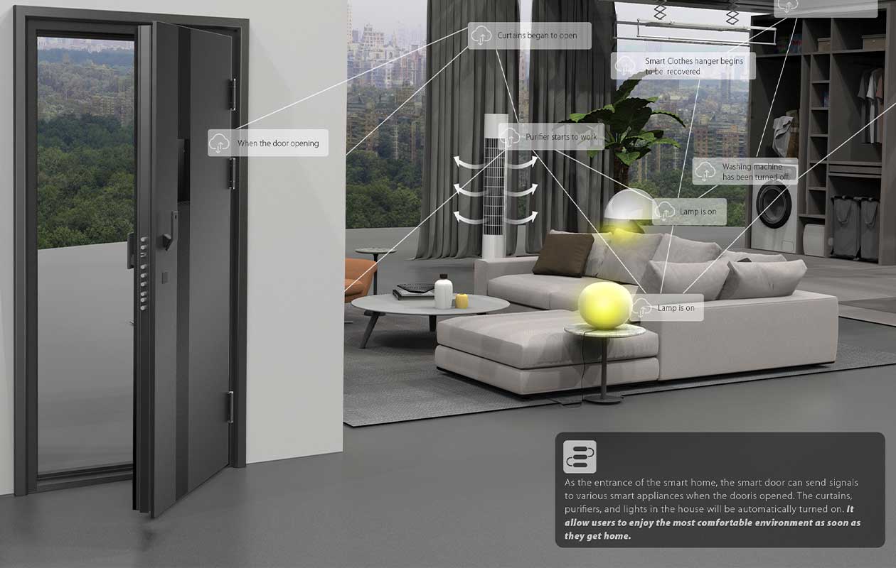 小白智能门是市面上首款量产上市的具备3D结构光的入户防盗门。创造性的结合了智能猫眼、智能门铃及智能门锁的全部功能。实现了不带钥匙即可安全开门,门上的摄像头可以时时刻刻监控家门口的各种动静并传送至用户手机。同时能够联动智能家居其他产品。设置各种智能生活场景。极大方便了用户的家居生活。也解决了用户单独购买防盗门后在去购买智能门铃、智能猫眼、智能门锁的二次安装困难和成本高昂的问题。