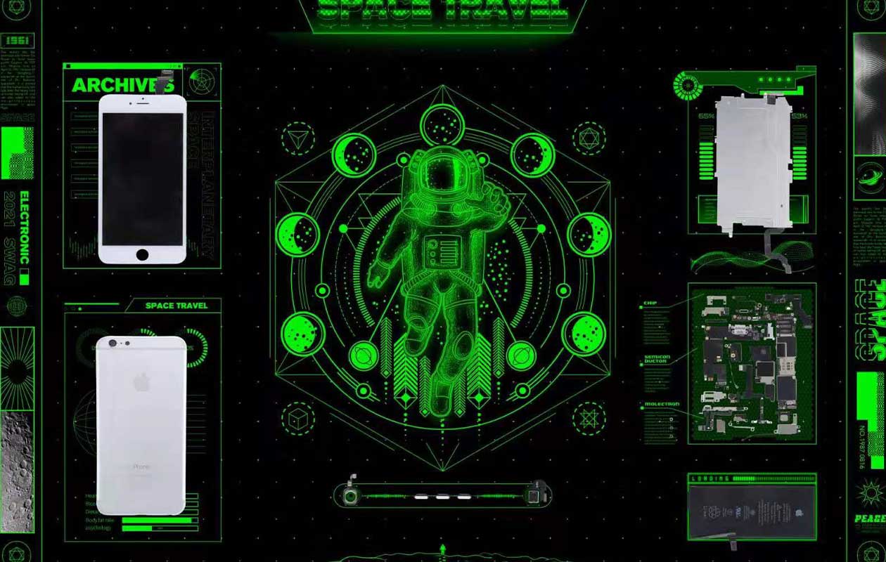该系列手机装裱画分别以“太空旅行”和“Free play”为主题。通过宇宙探索和复古电玩漫画引起年轻人的共鸣。为了适配不同机型,其通版背景采用了随性、包容的设计,用户可以将手机部件放在画面中任意区域,都能与周围元素相互融合,为用户提供了更自由的DIY空间。