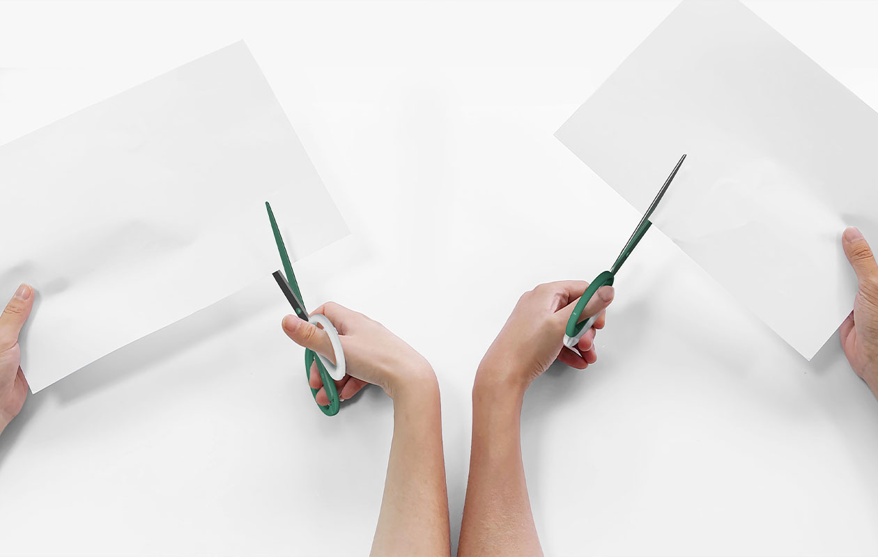 “双剪”是一把左右手用户都能正常使用的通用性剪刀。对于左利手用户而言,他们生活在右利手的产品世界中,大多数的产品都是专门为右利手用户而设计,少数的设计师也专为左手用户设计。但是我们认为左右手用户可以共同使用一把剪刀,提高剪刀的通用性,在公共环境或团队中,给不同用户以同样的包容。 世界上有超过90%的剪刀是专为右利手用户而设计的,左利手用户使用普通剪刀是一件困难的事情,只能选择定做或购买特殊的左利手剪刀。“双剪”是一把能够包容左右手用户的剪刀,她是一把双刃剪刀,只需要切换“刃”的方向,就可以实现左右切换。 使用成熟而简单的工艺,实现产品的通用性,以此实现合适的产品价格,以更容易的被用户所接受。 “工具”应该包容用户,而不是让用户强行适应工具。