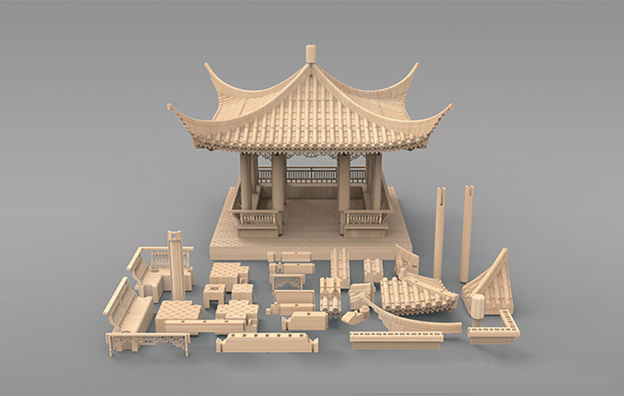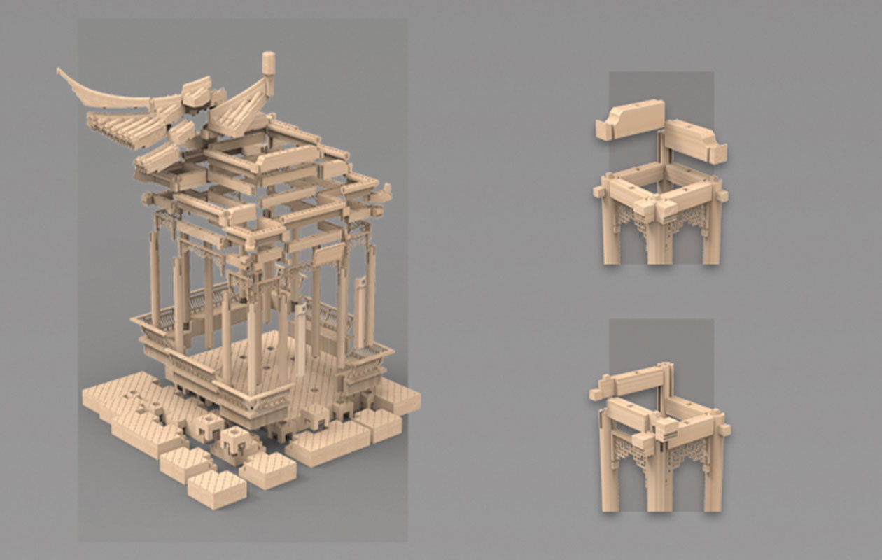 中国古建筑是中华民族悠久历史文化中极为重要的组成部分,是传统文化,艺术传承千年的载体,历久弥新。随着城市现代化的进程,古建筑的保护尤为重要,我们坚定的相信:普及是最好的保护,使用是最好的传承。 中国古建筑构架复杂,配件繁多,专业性强,普及度小。基于这些,我们在不改变古建筑构架方法和榫卯拼接的基础上设计研发出了一套古建筑通用拼搭积木。 现已研发出数百种通用结构零件,可以通过这数百种构建拼搭出中国绝大部分中国古建筑;每个结构件独立开模注塑,使用环保ABS塑料,可实现产品量产,以达到普及的基本要求。 我们设计了通用模块化的底座,可自由组合扩展,打破中国古建筑的固定样式,再配合通用结构零件进行自由拼搭,创造出自己心中所想的古建筑。