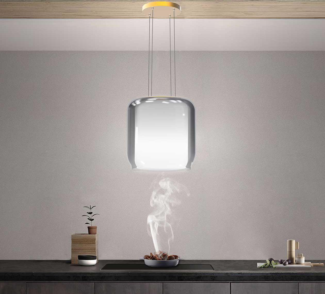 这是一款由中山甜美研发的全新外观吸油烟机。该作品采用了一种圆润细腻,如同倒吊酒杯一般的优雅造型。外观类似于一个在灶台上的可爱吊灯,在夜间开启时具有迷人的魅力。同时,该作品的功能性也同样强大。吸力强大的大功率直流电机、低噪音的离心风扇,以及不粘油滤网,三者合一,一步到位,轻松去除厨房中的大量烟雾和烹饪异味。该作品还为不同的烹饪类型准备了3档不同的风力档位,方便用户根据情况自行选择。