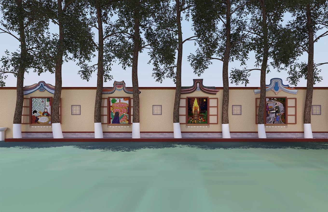 汕头市金平区第二幼儿园一直围绕“潮汕传统文化”主题作为教育教学课题,通过教师的日常引导,幼儿对身处的城市文化底蕴,潮剧、潮汕童谣、潮汕小吃、潮汕粿品、潮汕建筑等有了深入的了解,弘扬和传承潮汕传统文化中,潜移默化孕育出许多与潮汕文化相关的绘画和手工作品。为了更好的加以展现,为幼儿营造具有潮汕文化特色的文化氛围,利用幼儿园有限的操场空间,我们通过采用PU花岗岩仿真石皮平铺围墙墙面,运用潮汕古建筑“金、木、水、火、土”特色屋檐立体装饰铁结构组件,内藏LED灯光,来衬托出幼儿潮汕主题软陶手工作品,用仿古中式镂空圆形窗花进行整体的点缀贯穿。与操场种植的大树和树藤交相呼应,形成林中有屋,屋中有景。根据外建筑结构,用孔板定制潮汕建筑图案装饰外立面,更好的把原有现场多年存在的线缆、管道进行覆盖掩饰,不仅美化了整体空间,也让环境更加简洁。