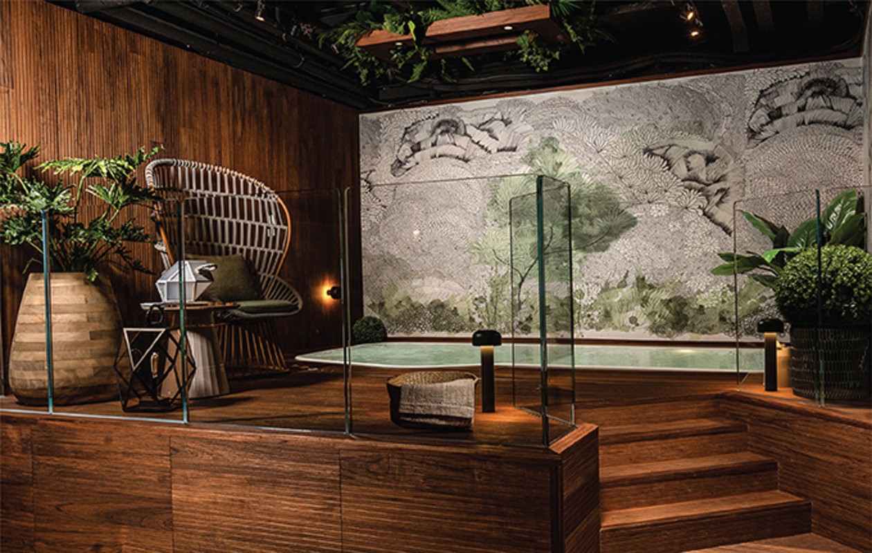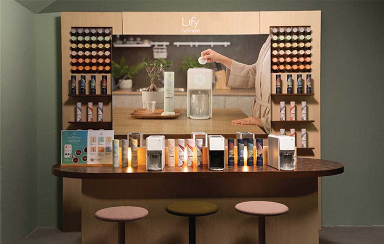 「幸福生活提案」是香港優越生活綜合百貨店COLOURLIVING的期間限定概念區,設計目的是透過提升家居生活概念推廣個人健康。概念區融合廚房、品茶吧及水療浴池,透過輕鬆的烹飪、草本飲料和紓緩的按摩浴等促進身心健康的活動,將健康生活的概念引進家中。設計團隊以大自然為靈感,運用綠化植物、大型盆栽及植物主題的牆紙連繫三大主題區,並配合溫和的色調營造出視覺上的連貫性和舒適感,呼應了隨時在家撫慰身心靈的健康生活概念。