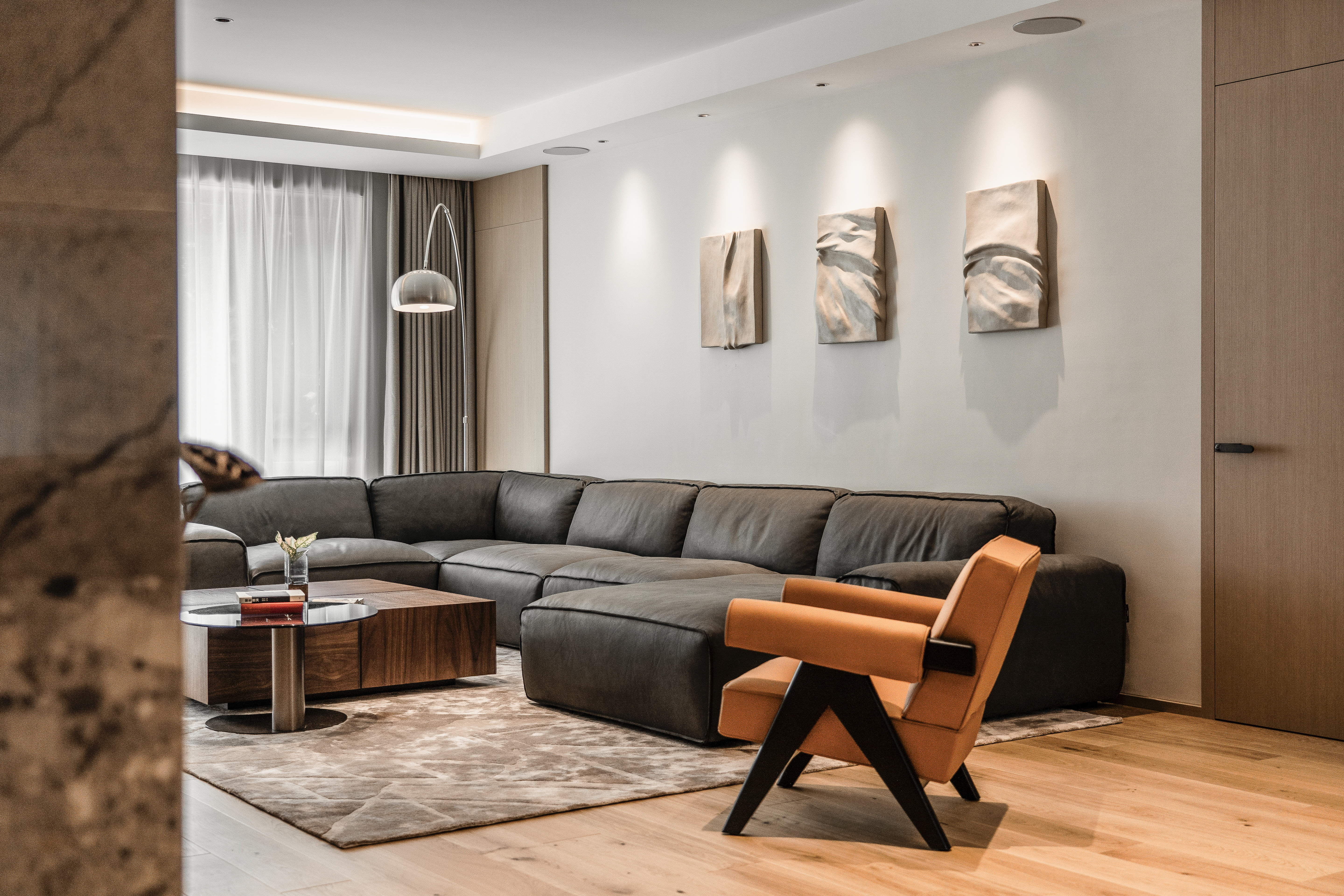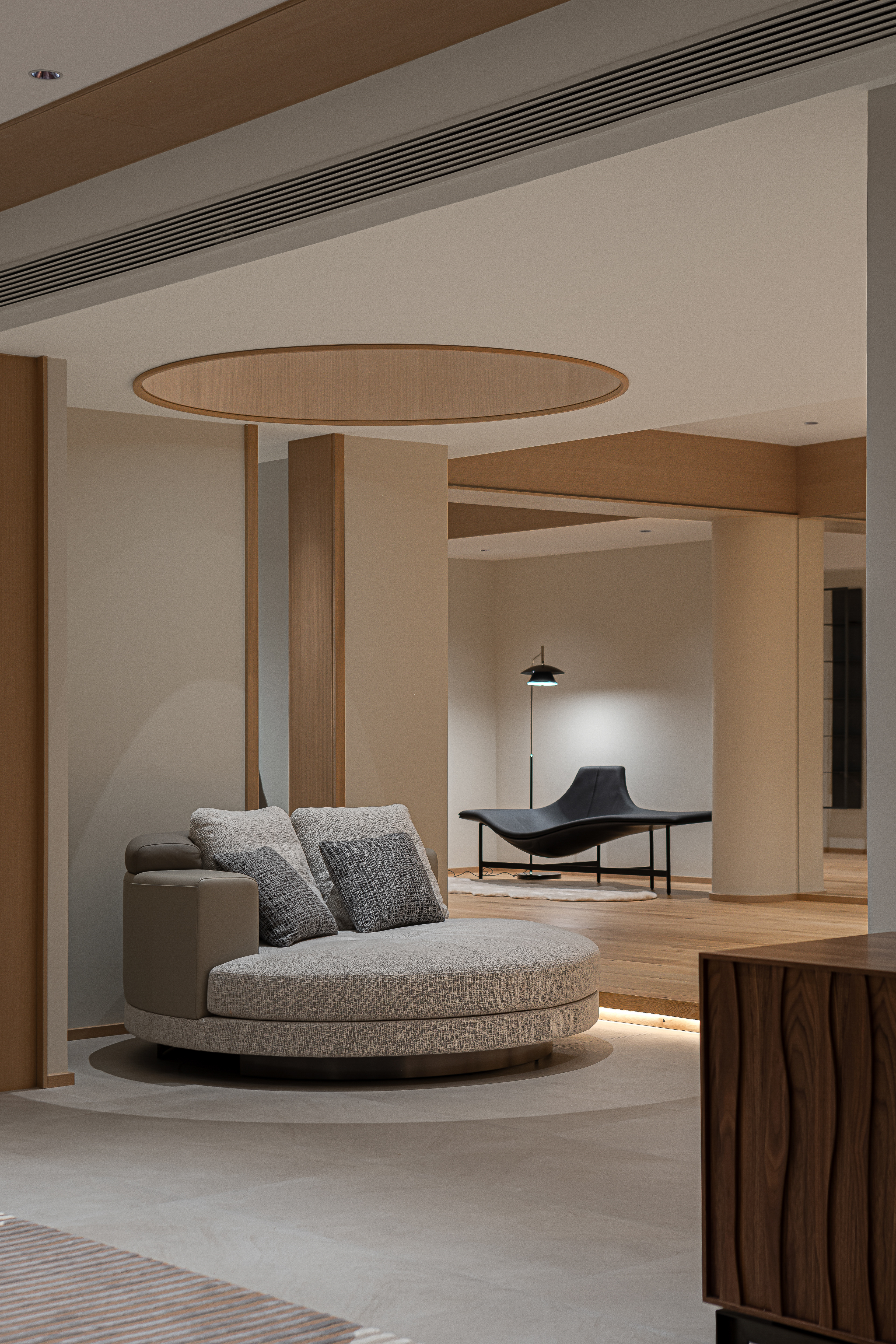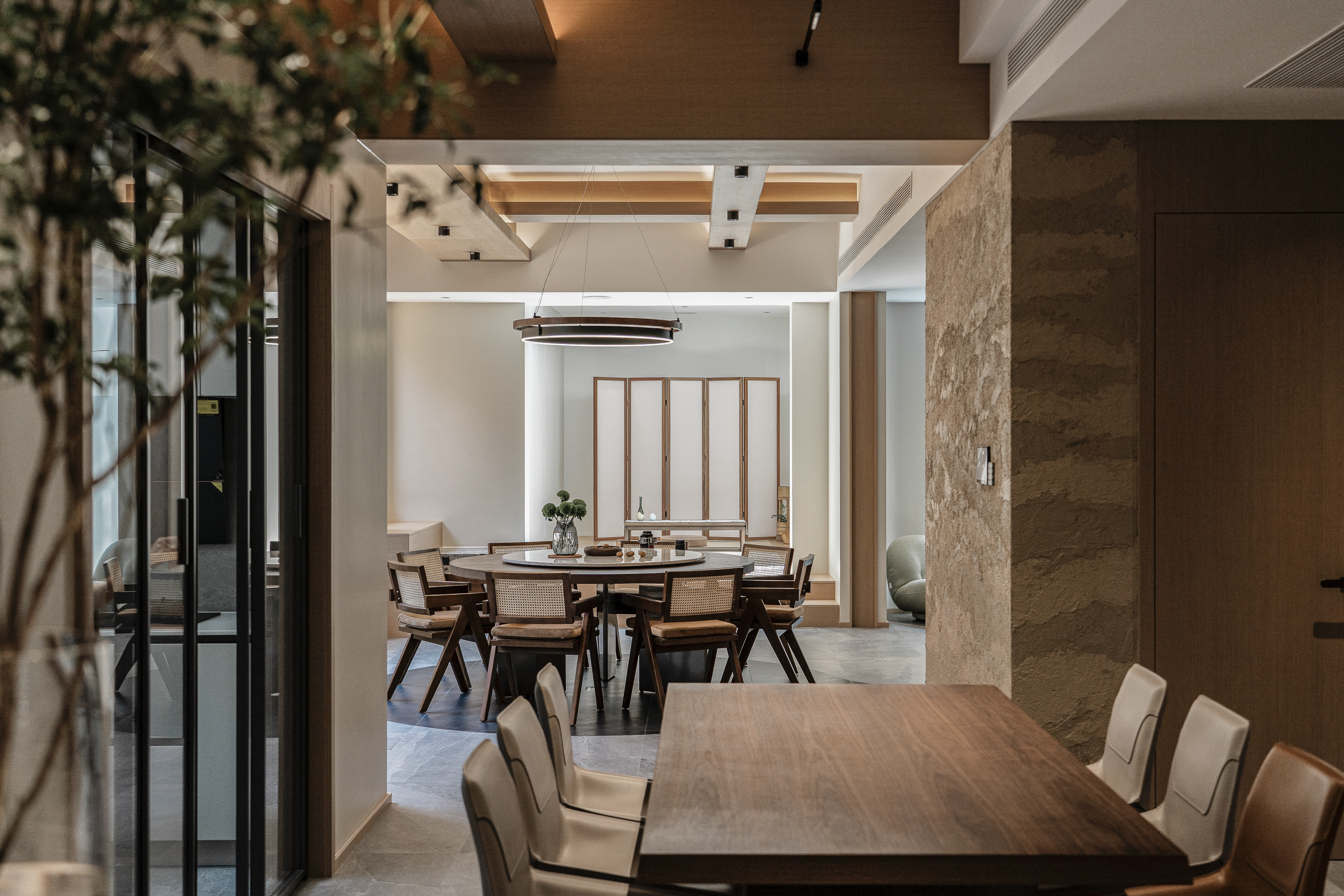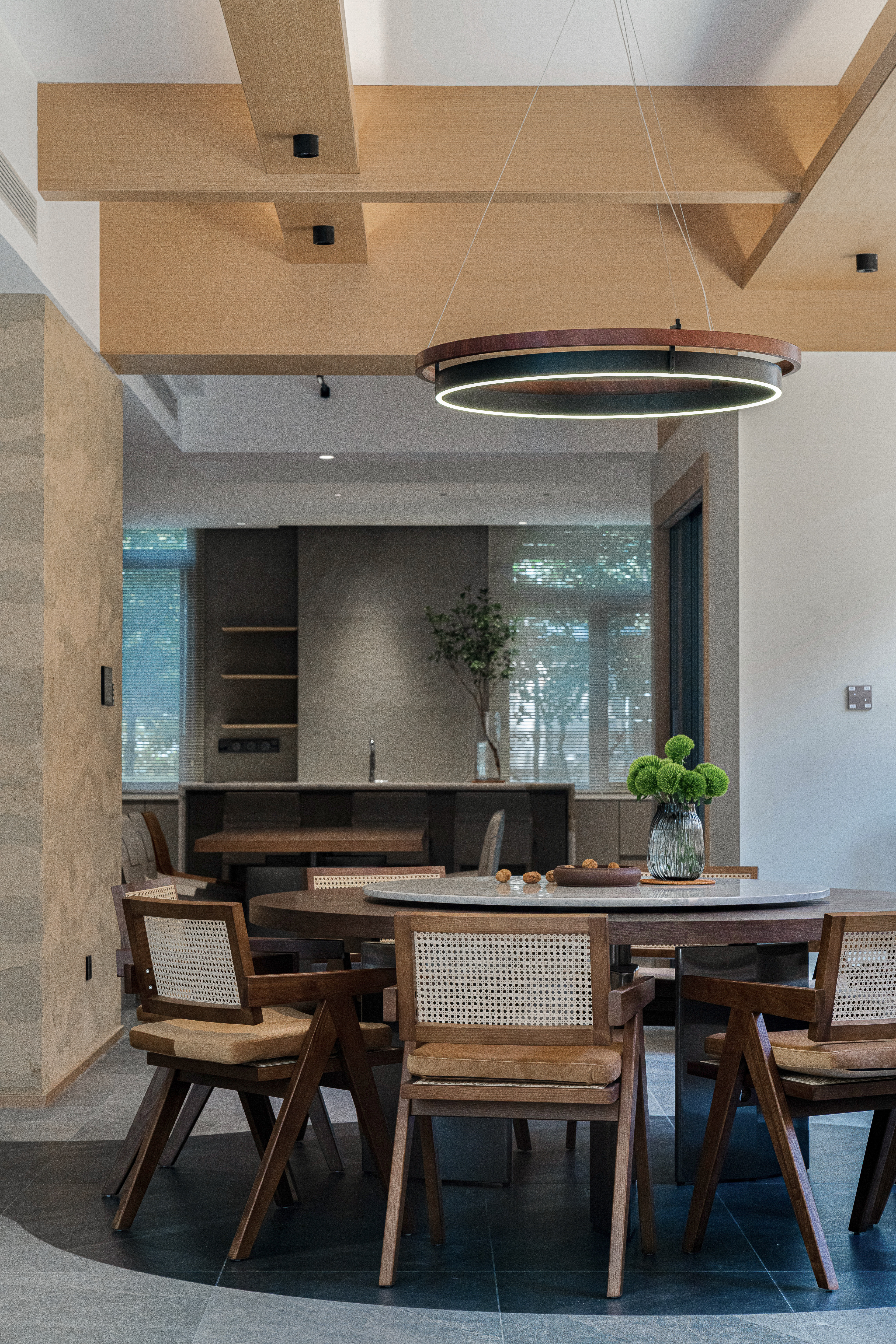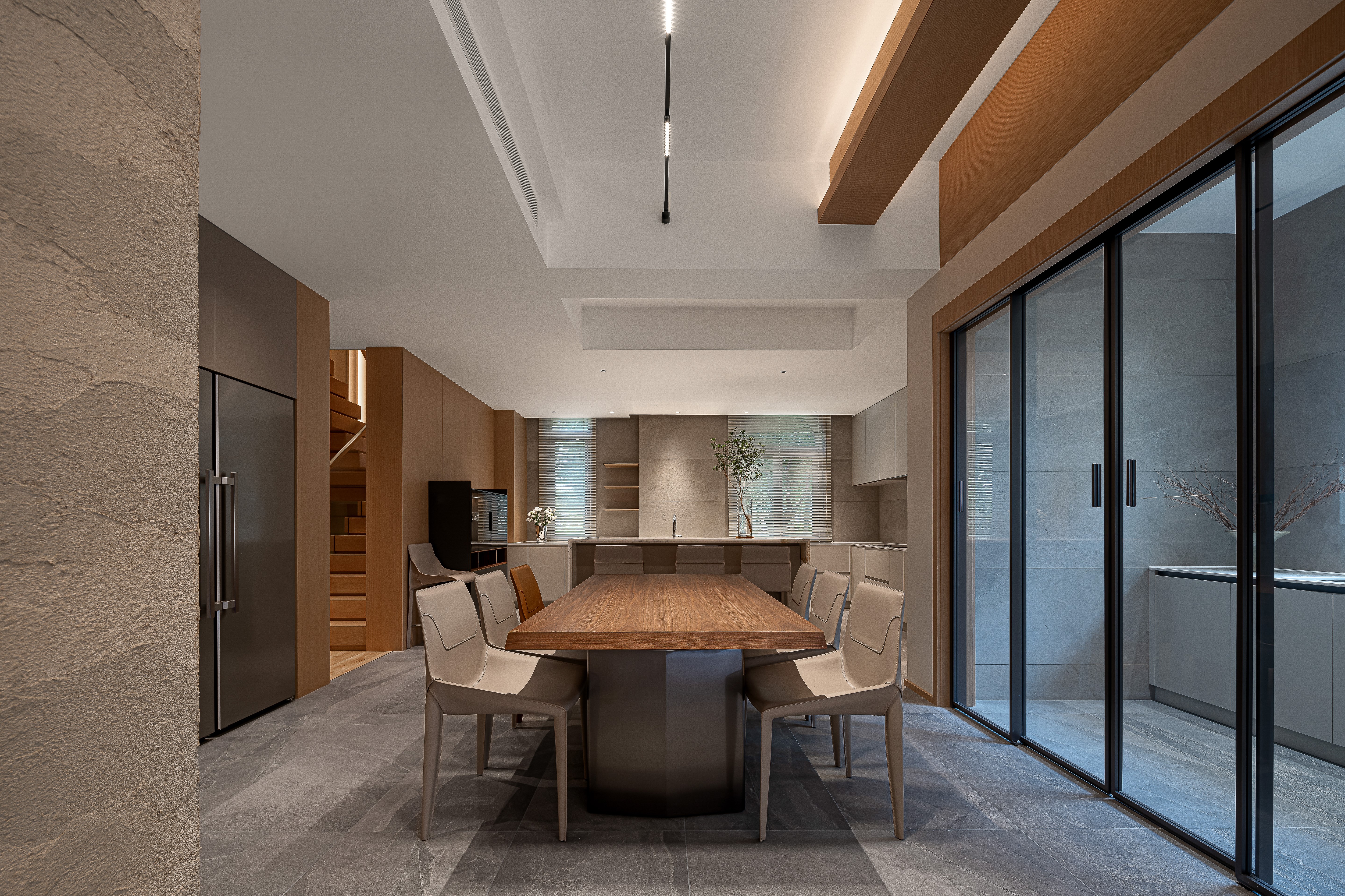 设计师在满足五口之家的生活功能需求下,尽可能拓展整体空间的更多可能性,并巧妙利用多种设计手法攻克了房子每层面积大采光不足的疑难和半地下室通风潮湿的问题。设计师同样在美学需求上表达了自己 “致广大,尽精微” 的追求。意图把整个房屋做成一个流动的空间,虽地处北方,屋内无水,最终呈现出的整体氛围和空气却自然地流动起来。目之所及,无边界围墙的划分,无需刻意把目光调整到某个角度某个空间,也不需要堆砌或着眼于某种材料。置身其中,这个项目希望通过用心的设计给人带来舒适的喘息感。